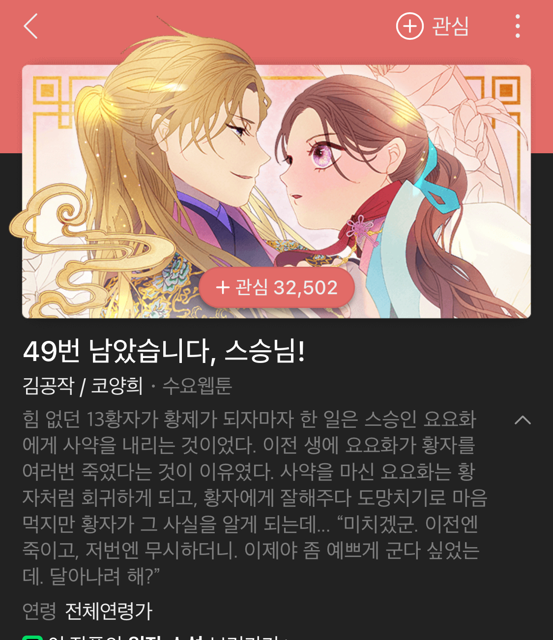 *취향 - 로맨스 판타지 궁중 치정 암투 추리 좋아합니다.